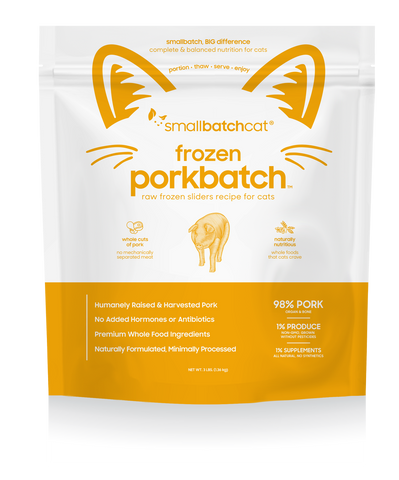 Small Batch - Frozen Pork Batch Sliders - Raw Cat Food - 3 lb (Local Delivery Only)